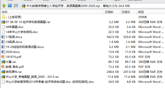 中大岭南学院博士入学经济学,英语真题集2000-2020.zip