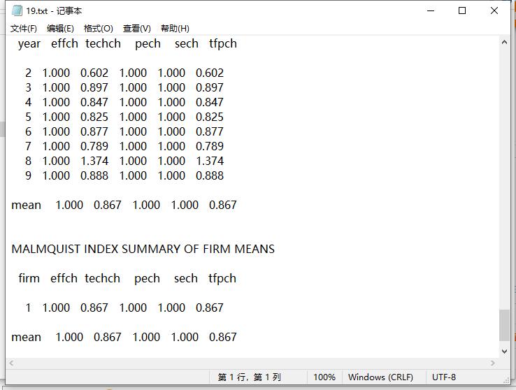 你这样做出来的结果是完全错误的。第一,你的数据应该是一个省或市的,因此决策单元dmu应该填1,但这完全不足以进行DEA,具体参见我给你的那本书。第二,绝对不能以年份为决策单元,因为DEA的理论基础是假定决策单元在一定时期内采用相同技术,如果以年份为dmu,相当于否定了技术进步。