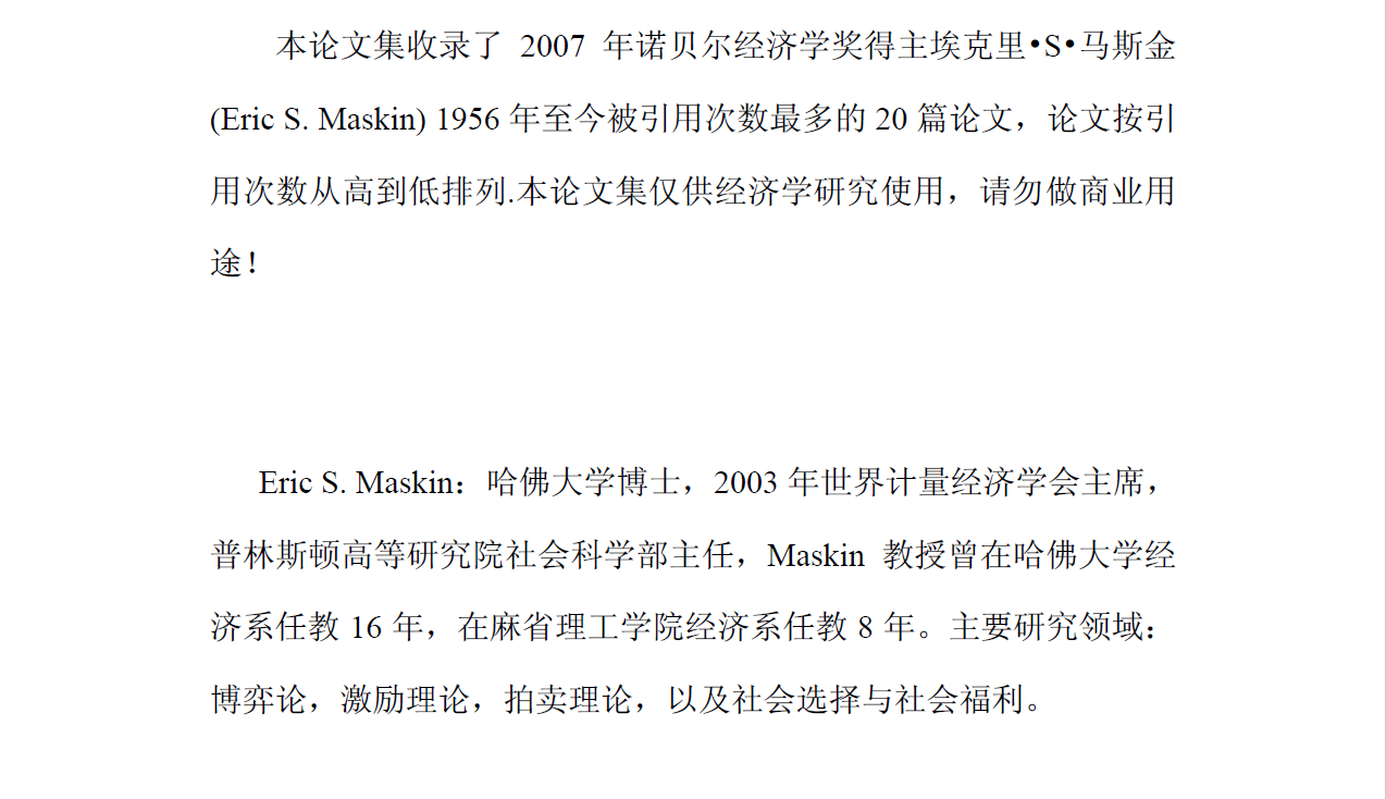 2007年诺贝尔经济学奖得主埃克里—马斯金论文集,点击下载: