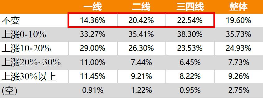 对收入增长仍有较好的预期,一线城市收入增长预期最高。有41%的受调研对象认为2018年会有10%以上的收入增长,其中25%的对象认为收入涨幅在10-20%。从各线城市看,一线、二线和三四线城市受调研对象认为2018年收入增长在10%以上的人数占比分别为51%、43%和38%。