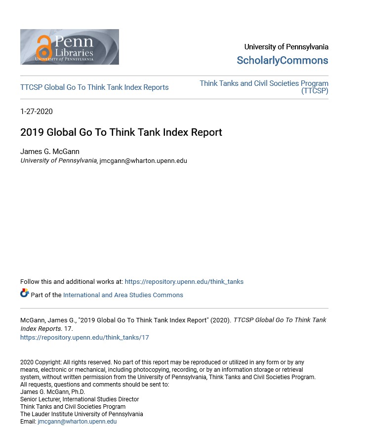 全球智库报告2019-TTCSP-2020.01-270页