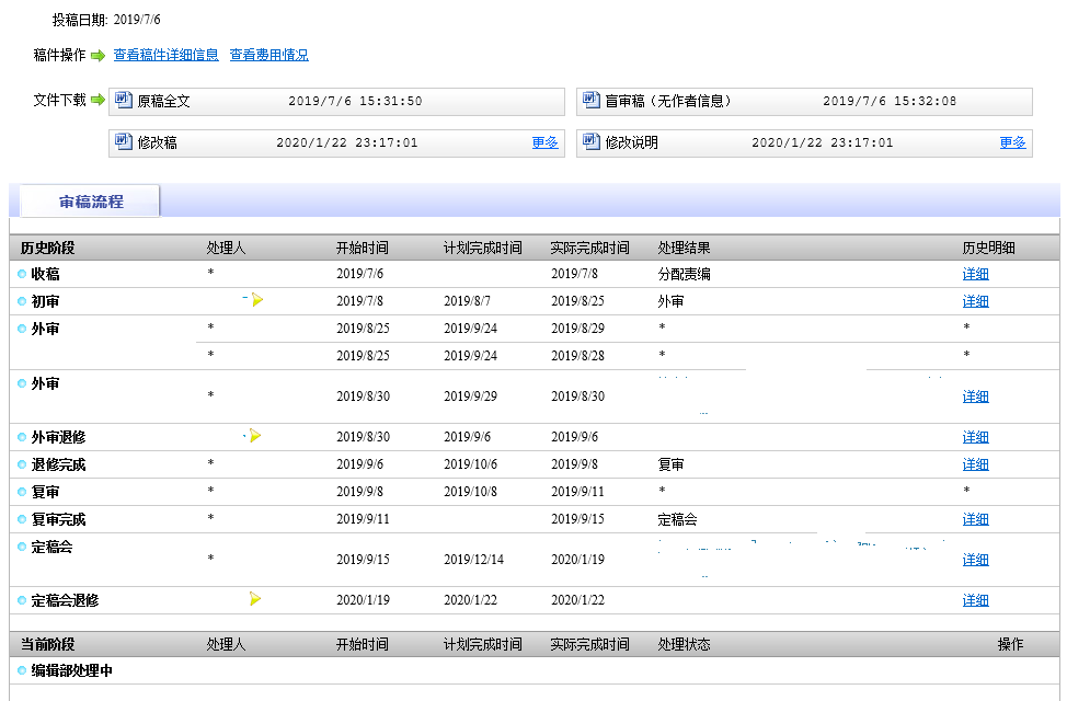 本人于2019年7月份向《农业经济问题》投了一篇稿子,先后经历了“初审——外审——外审退修——复审——定稿会——定稿会退修”等阶段,2020年1月22日已将定稿会退修意见返修了回去,目前流程处于“编辑部处理中”。这篇稿子从初审到定稿会阶段,都是《农业经济问题》的责编老师在审理。在2019年11月底的时候,《农业经济问题》的责编老师给我打电话,说我的论文风格更符合《农业技术经济》的要求,于是建议我转投《农业技术经济》参加终审。 目前论文一直处于“编辑部处理中”,请问:1.从《农业经济问题》转投《农业技术经济》后,录的概率如何?2.定稿会退修完成后,编辑部处理得多久?3.定稿会退修之后录的概率有多大?