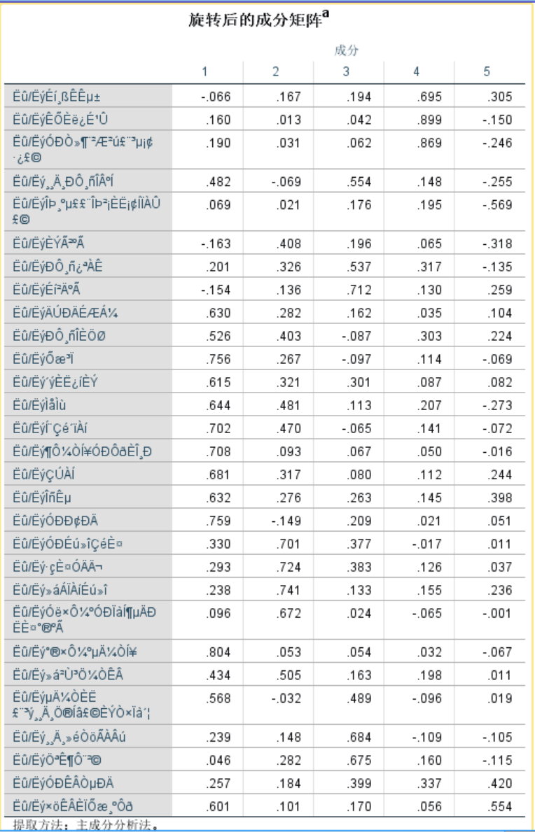 在利用spss做因子分析之后得到的旋转成分矩阵怎么是这个样子的,请教有没有哪个大神能帮我解答一下