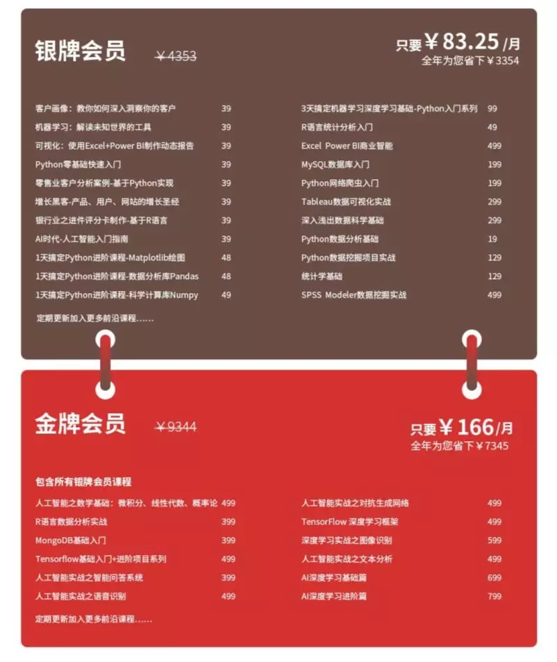 3、会员计划会有新的课程免费加入及其他增值服务吗?同上,我们不承诺一定有。但我们会尽力将新开发的优质好课纳入会员计划,同时也会与数据科学领域前沿教育机构合作,共享优质学习内容,以满足学员的学习需求。