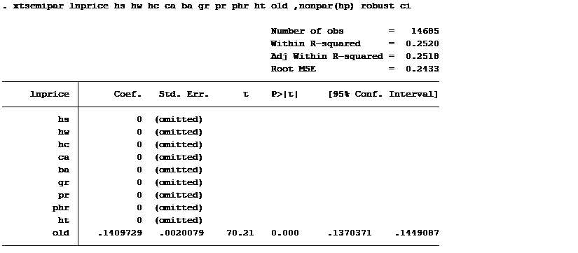 用的面板数据进行半参数估计,结果所有的解释变量都omitted,求大佬们指教是什么原因,万分感激!