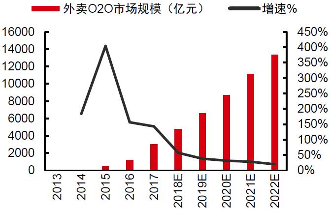 图2:2013-2022年外卖O2O行业规模及增速