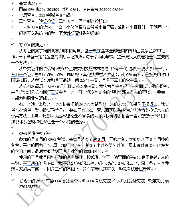最后我看到很多考友找cfa交流群,我拉了一个新的,我也不会在里面推销,如有推销欢迎举报,送机票(群已关私聊功能),不爱被打扰的吧友,来当个朋友ok的。