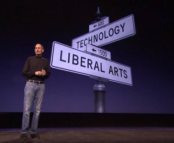 科技和人文的交点是跨界融合科技与人文,乔布斯带领的苹果公司就是科技与人文融合的典型代表。乔布斯说他要成为擅长人文和科技的人,《史蒂夫•乔布斯传》中写道:“‘我小时候,一直以为自己适合人文学科,但我也喜欢电子设备。然后我看到宝丽来创始人兰德的话,关于既擅长人文又能驾驭科学的人的重要性,于是我决定我要成为这样的人。