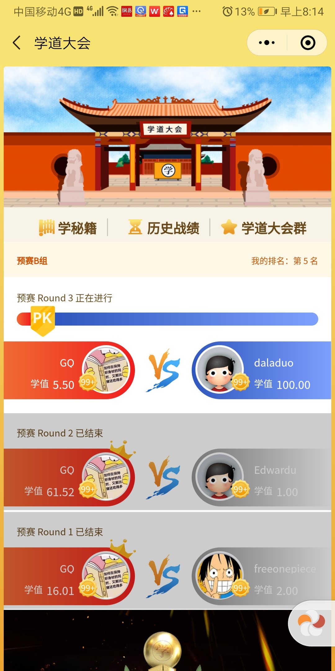 【学习笔记】第二格为昨日PK结果,一早起来发现天降神兵,可能止步于此了,bu ...