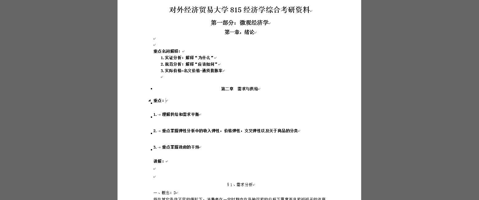 对外经济贸易大学815经济学综合考研资料,点击下载: