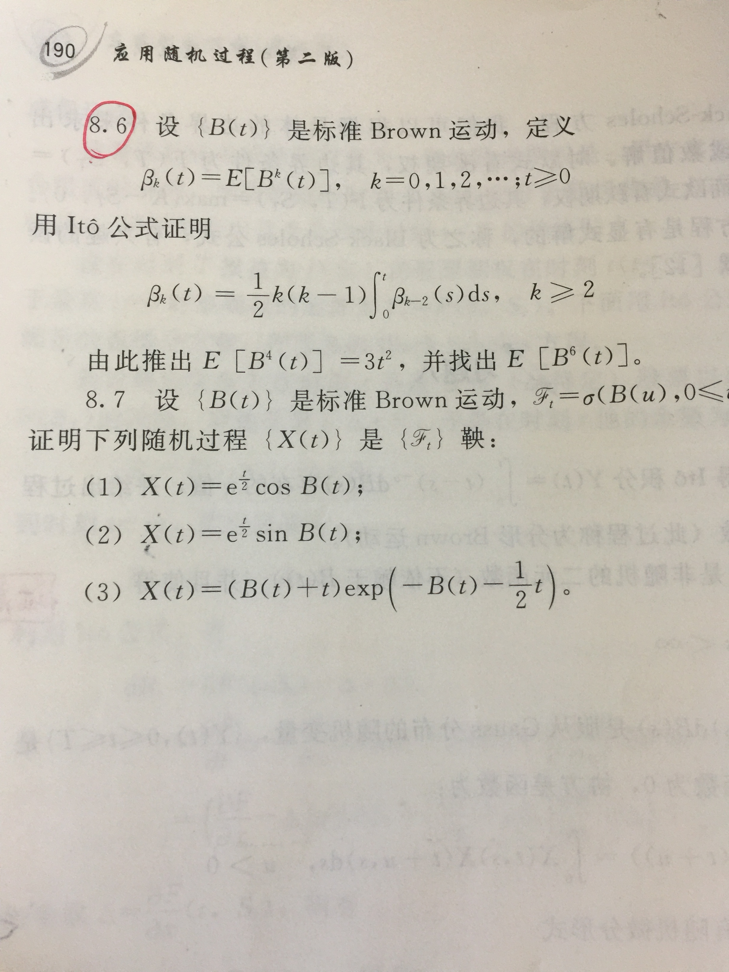 8.6题我用伊藤公式展开后不会了!还有8.7如何证明,答案直接给我结果,不懂意思。求助大神