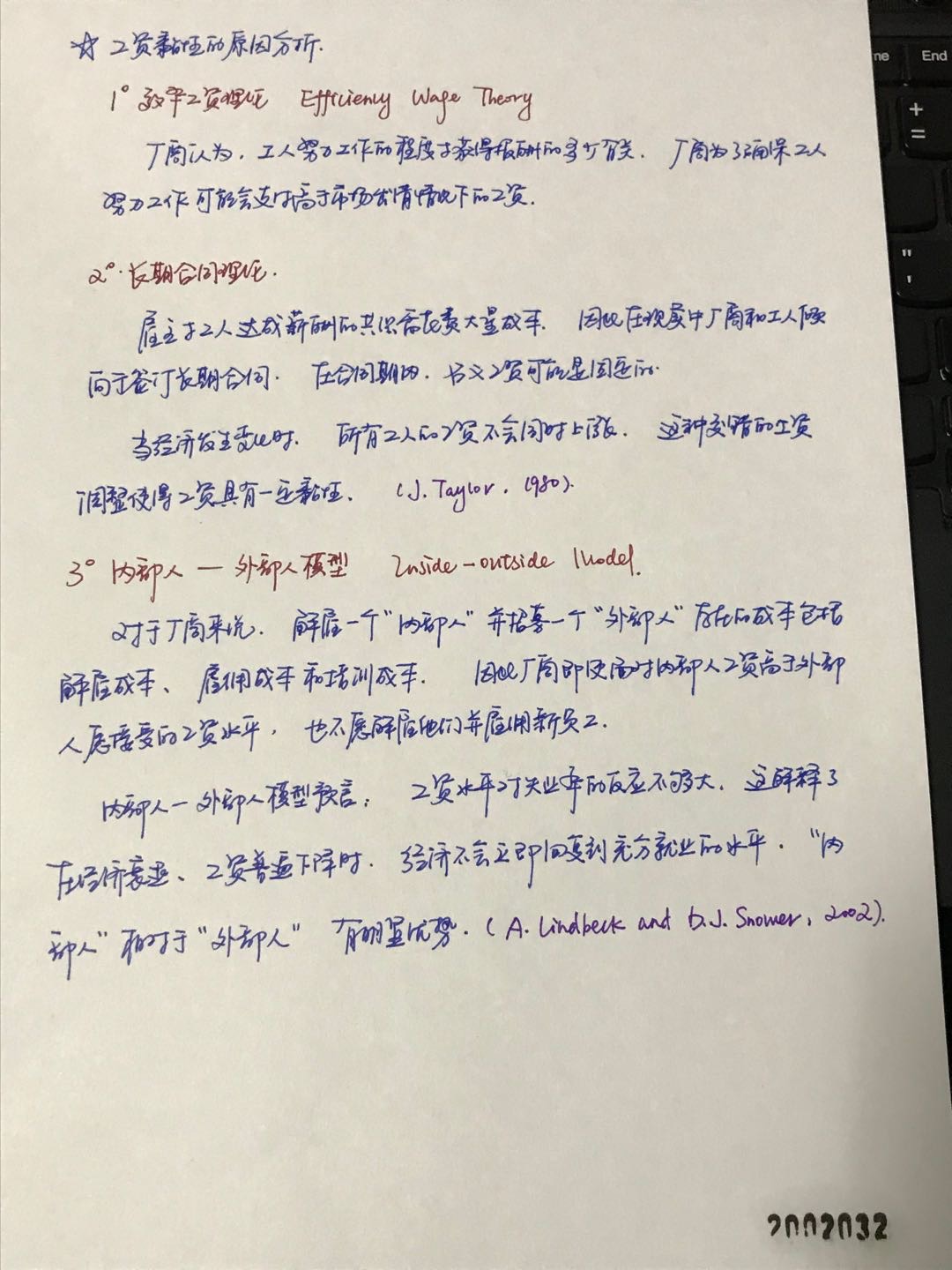工资黏性的三个产生原因:效率工资理论,长期合同理论,内部人-外部人模型(A. Lindbeck & D. J. Snower, 2002)