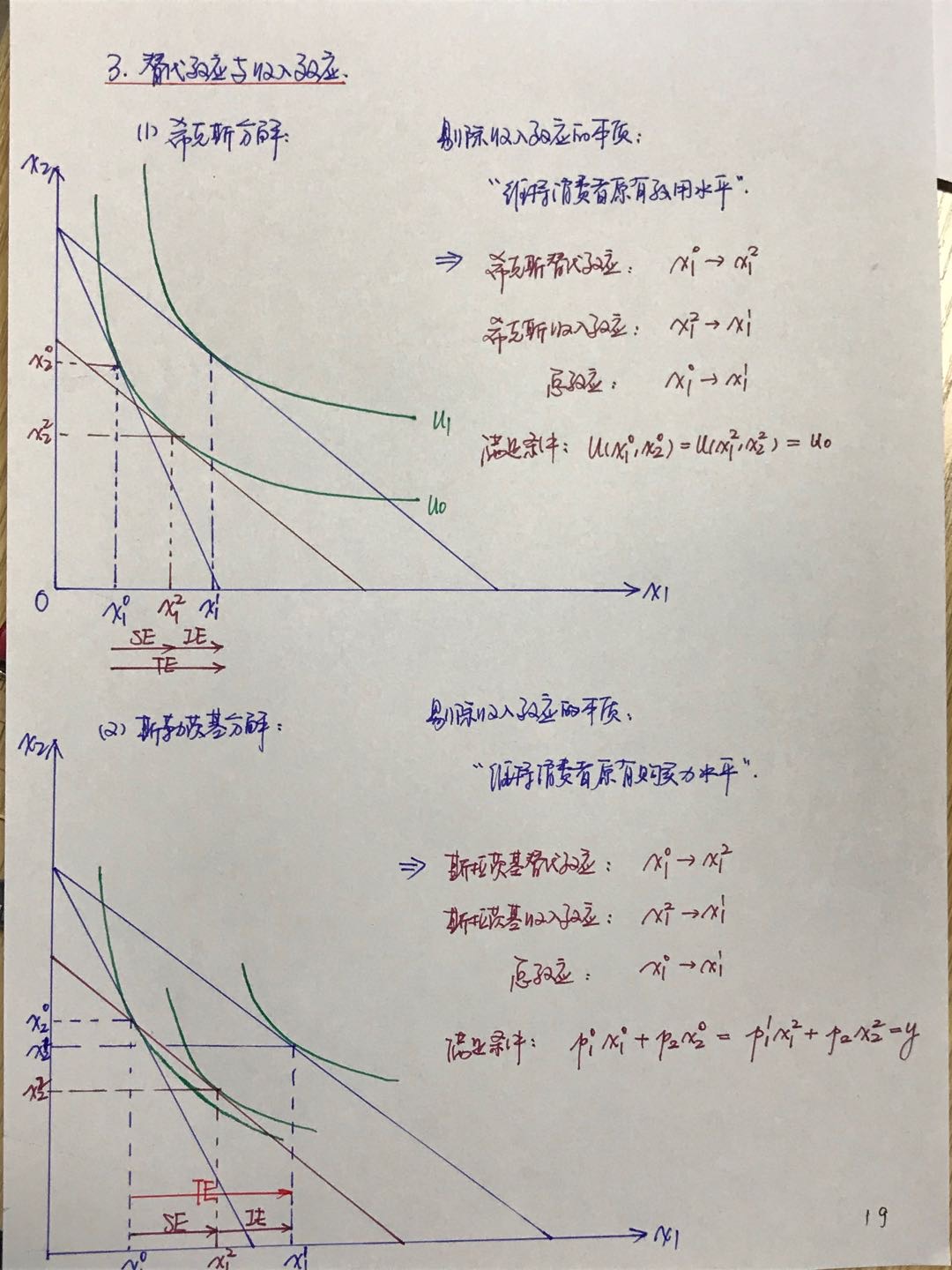 斯拉茨基分解(购买力不变)和希克斯分解(消费者效用不变)