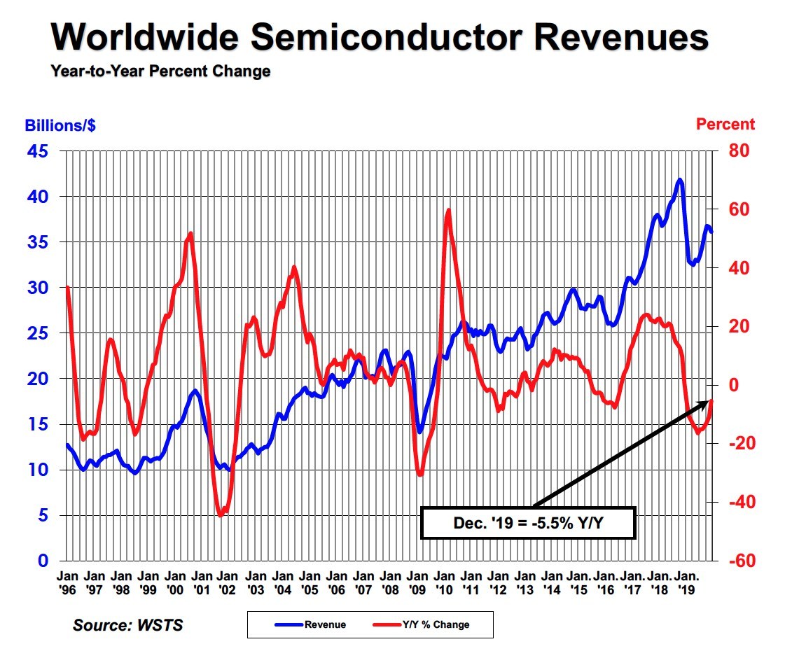 进入2020年,半导体行业会继续下滑,还是止跌回升?SIA/WSTS给出了温和增长的预测,预计2020年将增长5.9%,2021年增长达到6.3%。然而,这一预测是基于这些宏观和微观因素,即中美贸易达成第一阶段协议、美国-墨西哥-加拿大(USMCA)自由贸易协定达成,以及存储器价格周期性调整和5G网络拉动半导体需求等。
