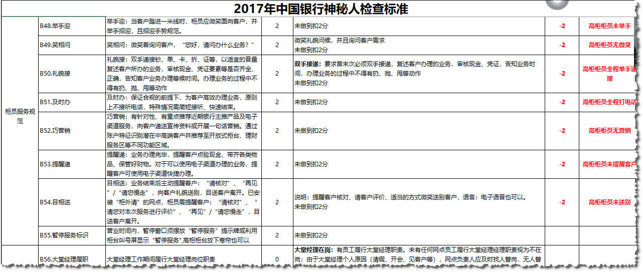 全面银行服务质量监测调查问卷:中国银行神秘人、飞行检查问卷