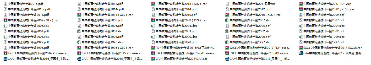 找了好久的相关数据目前有,1996-2018年中国教育经费统计年鉴PDF+Excel+部分CAJ,希望能帮到有需要的同学,数据太大有需要可以加QQ:296007348,添加请写明。