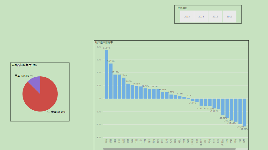 作业题:在报表业里制作空间维度与时间维度下的金额合计值的百分比占比与均比的分析内容;附上我的图形,待明日老师给出专业的指导意见。