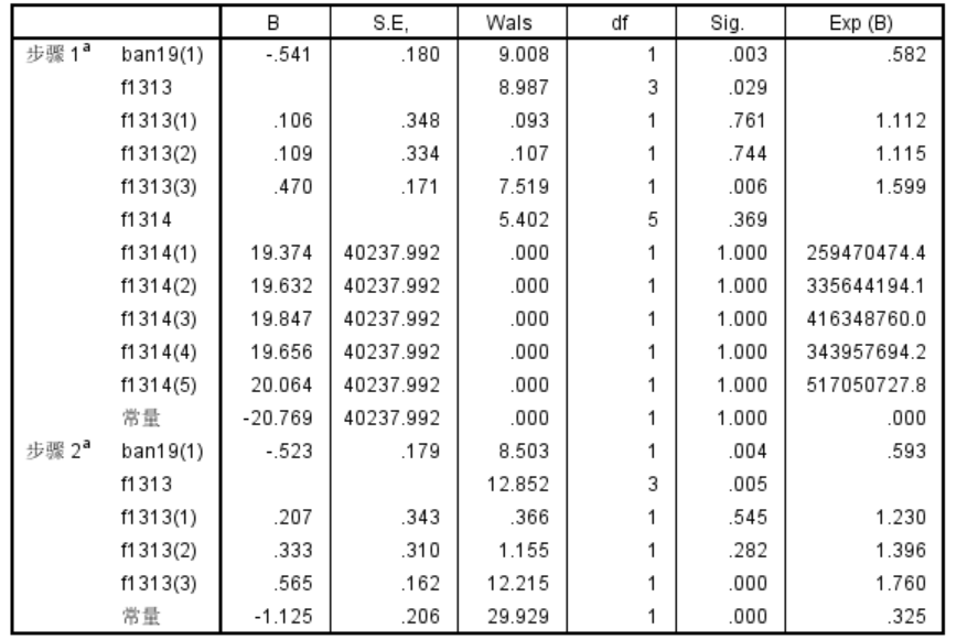求教一下大家,我在spss里做二元logit回归时把其中一个自变量做了分类(只有0和1两个赋值,1代表同意,0代表不同意)然后我跑出来的结果是这样,ban19是我做了分类的自变量,之后得到了ban19这个变量如果同意的话相关系数为-0.523,因为我想得到正相关的结果,所以我之后取消分类又试了一次就变成了正相关,相关系数还刚好是分类情况的相反数(0.523,-0.523) 这是为什么呢,不分类得出的相关系数的统计学意义是什么呢 这也能够代表这个自变量是能够显著影响因变量的吗 统计小白虚心求教!