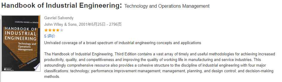 The Handbook of Industrial Engineering, Third Edition is an immensely useful one-stop resource for industrial engineers and technical support personnel in corporations of any size; continuous process and discrete part manufacturing industries; and all types of service industries, from healthcare to hospitality, from retailing to finance.
