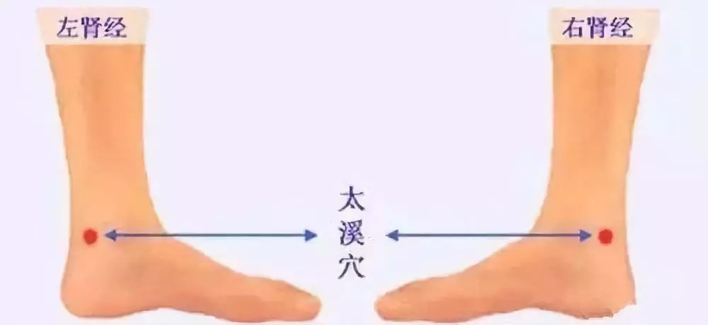 位置:在脚的内踝与跟腱之间的凹陷处。双侧对称。功效:太溪穴是肾经的原穴,是肾经元气经过和留止的部位,所以古人称太溪穴为“回阳九穴之一”,认为它具有很强的回阳救逆之功。
