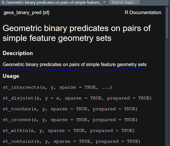Geometric binary predicates on pairs of simple feature geometry sets——