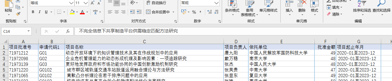 自己整理的2019年国家自然科学基金-管理学部-面上项目的所有立项list