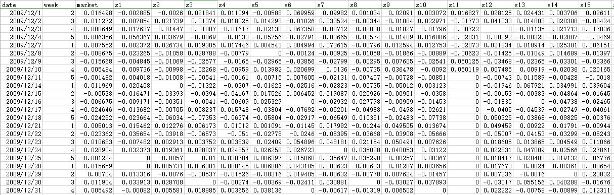 3.原始数据如下图所示,是2009-2019的交易日数据,最后的D1i变量和D2i变量是月度数据就可以了