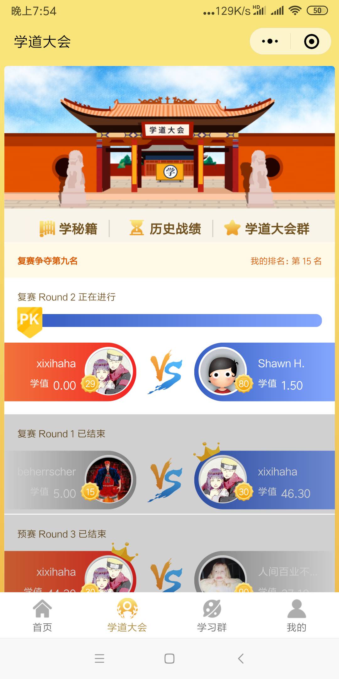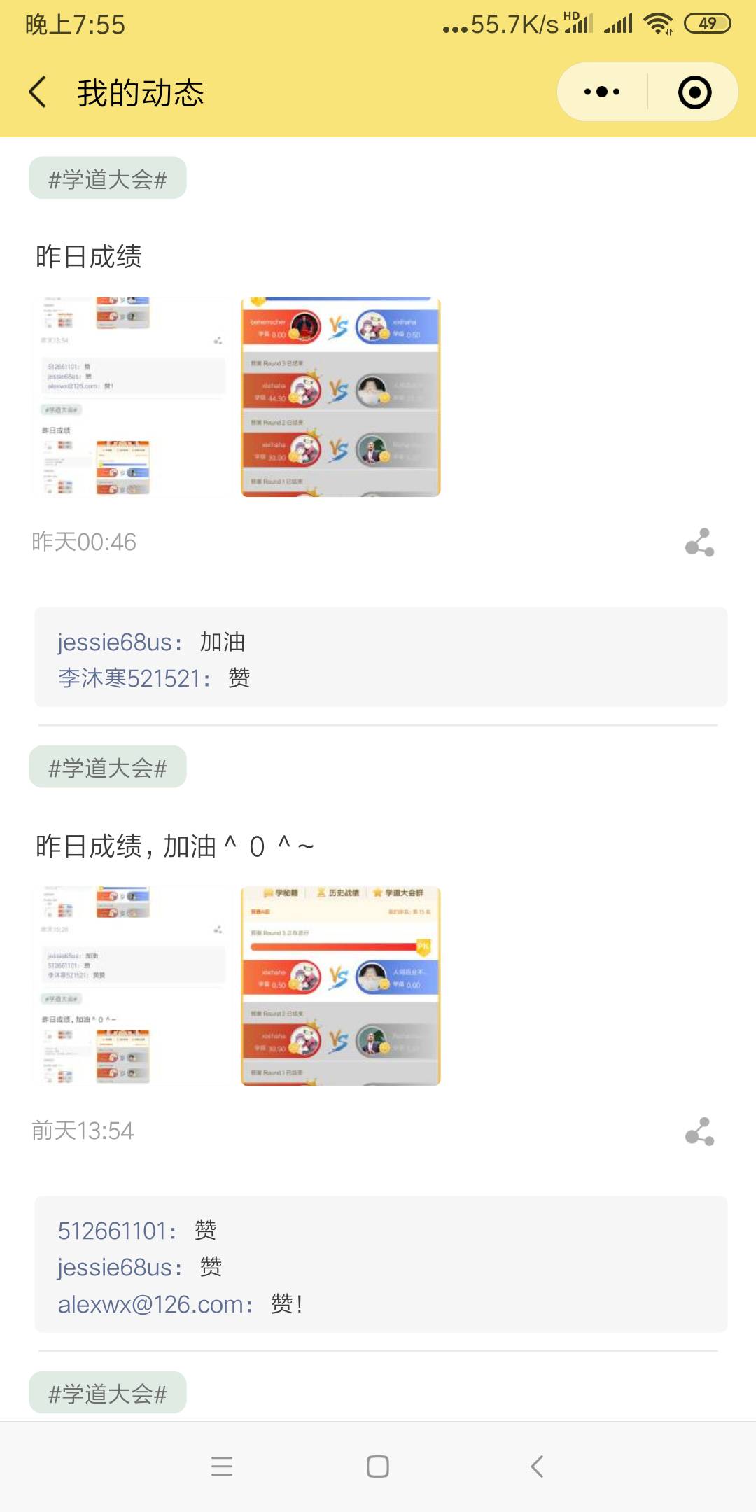 昨日成绩,加油!