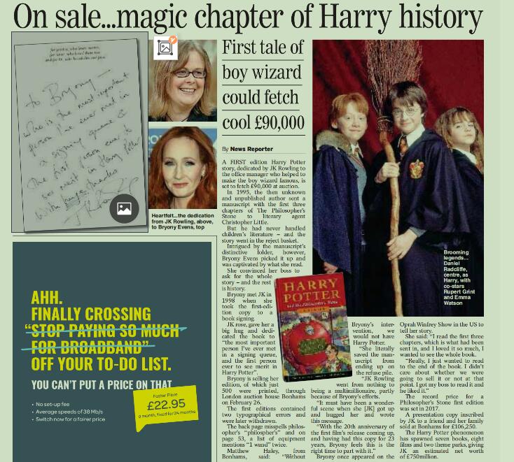 A FIRST edition Harry Potter story, dedicated by JK Rowling to the office manager who helped to make the boy wizard famous, is set to fetch