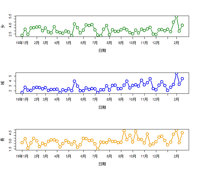 因为日期第变化往往不是固定的,这样用ts时间序列并不合适。我的土办法是把日期列改为1:n第序号,然后在需要增加标签地方手动设置,这样很麻烦。求教简便办法。数据见附件。