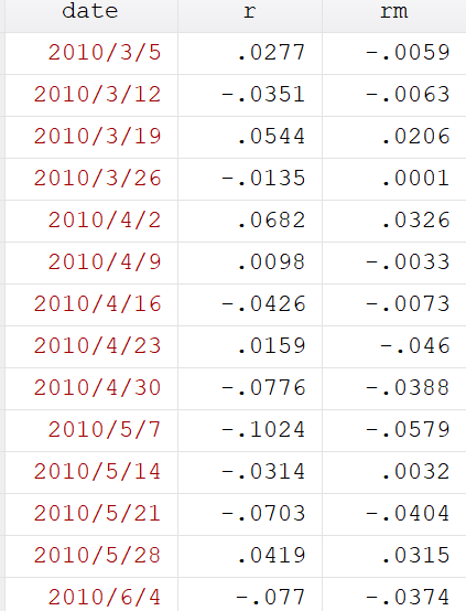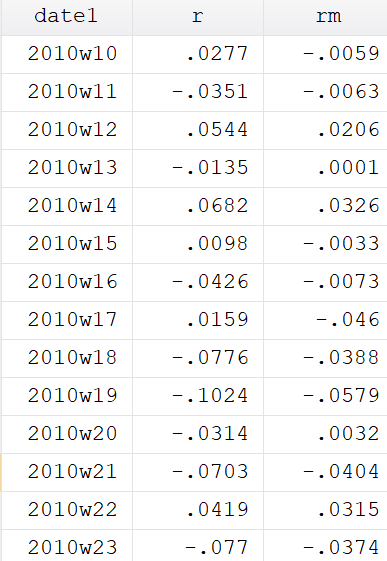 如图,predict e,2010年第四十周被删去,滞后项就从第41周重新开始了。