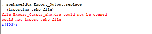 我先用101个城市的经纬度坐标在arcgis里生成了shp文件,再在stata中导入想用spshape2dta转换成dta文件,但显示导入失败,r(603),求高人指导接下来应该在怎么办