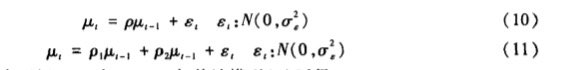一下是作者的结果,我的数据和他完全一样,但得不到结果,作者在AR(1)和AR(2)中给出了后者的结果