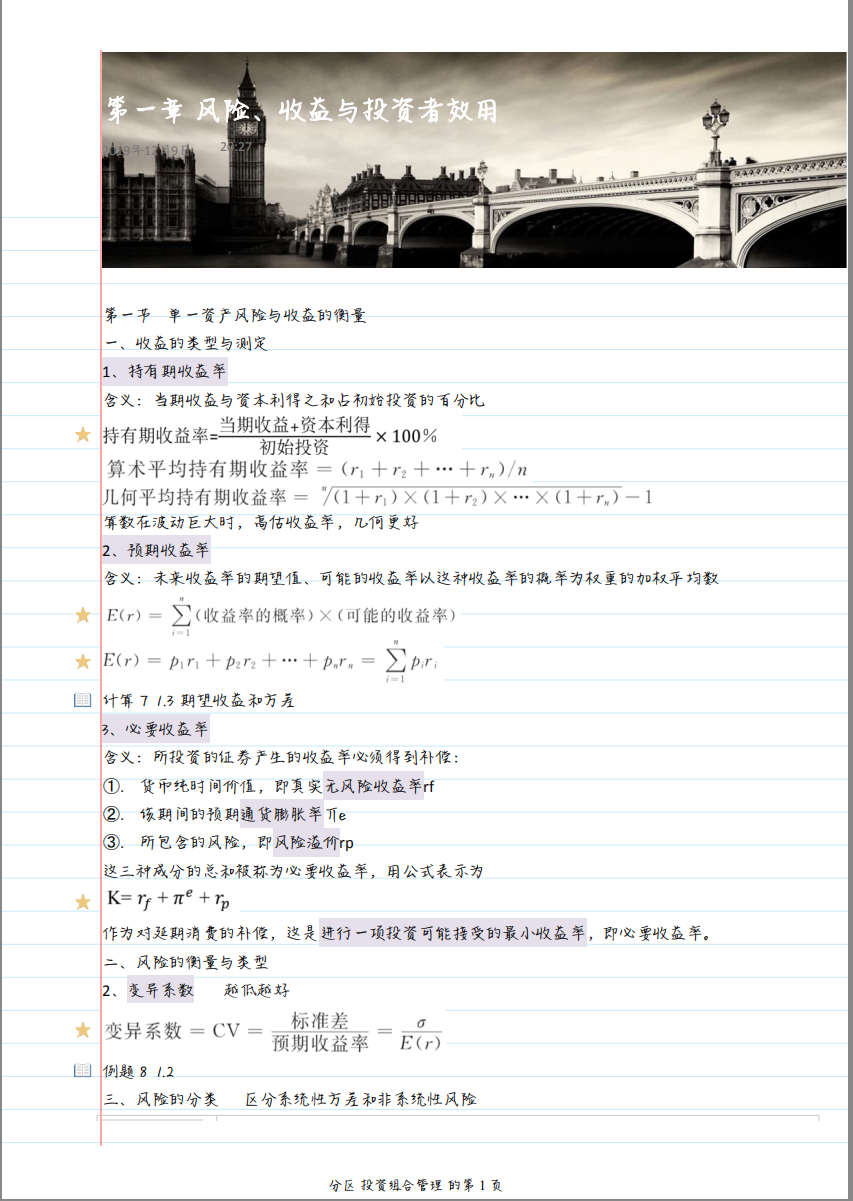 配套书籍为李学峰的《投资组合管理》。这是本人期末考试整理的自用复习资料,囊括书中所有重点。