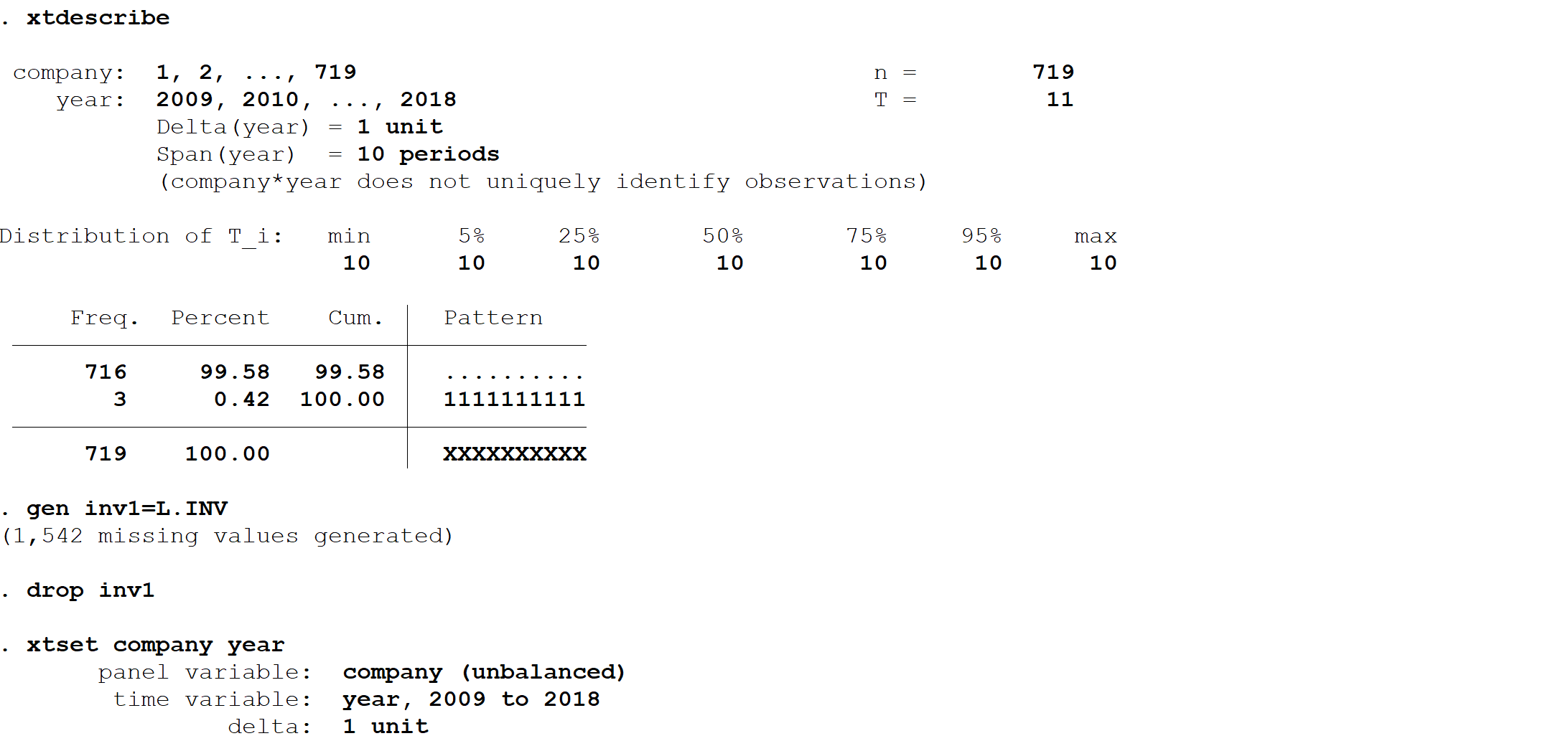 STATA非平衡面板数据缺失
