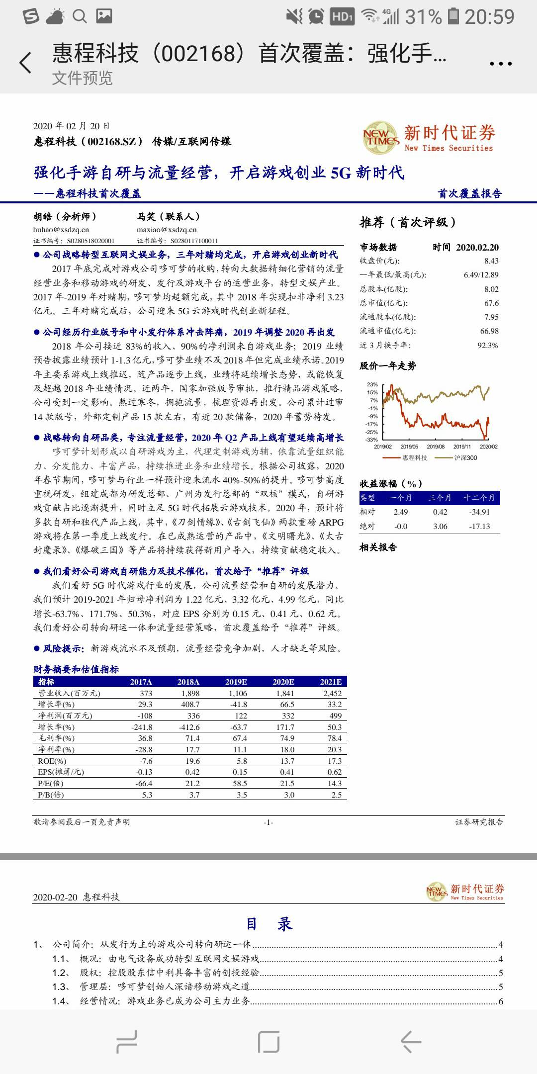 【学习笔记】惠程科技开启云游戏5G新时代,毛利率高,pe低