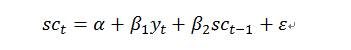 在回归方程框里输入 sc c y sc(-1) ,然后回归