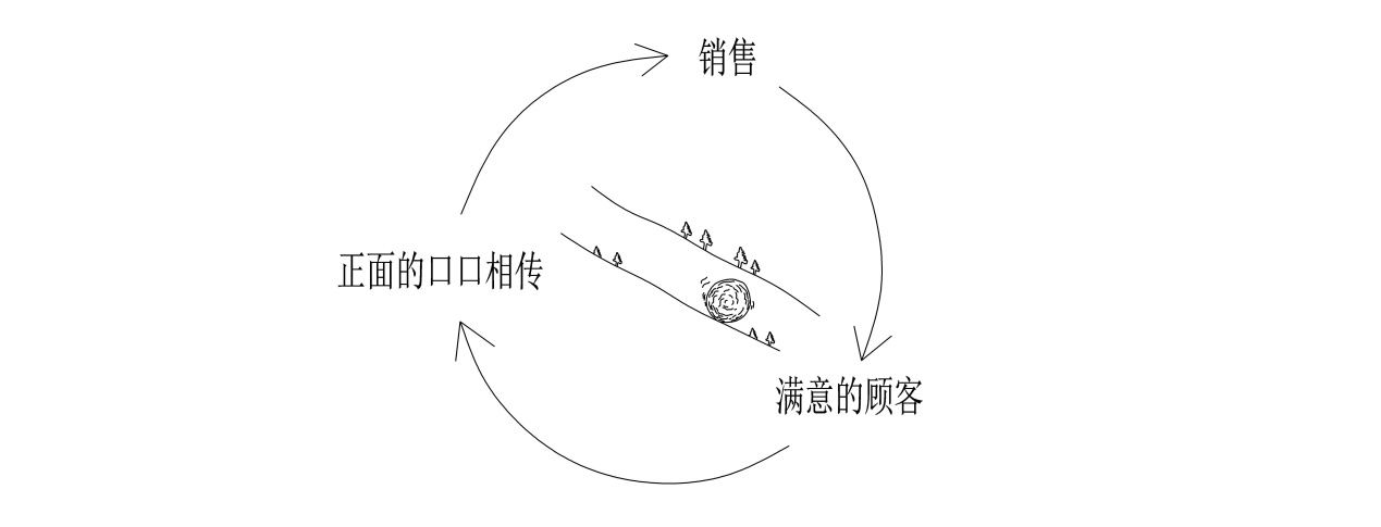 产品口口相传就能有滚雪球效应(大众汽车的甲壳虫车型和苹果公司的iPod都是如此),满意的顾客告诉别人去购买产品,更多满意的顾客又告诉更多的人。下面就是口口相传增加销售和满意度的正反馈示意图(如图11所示):