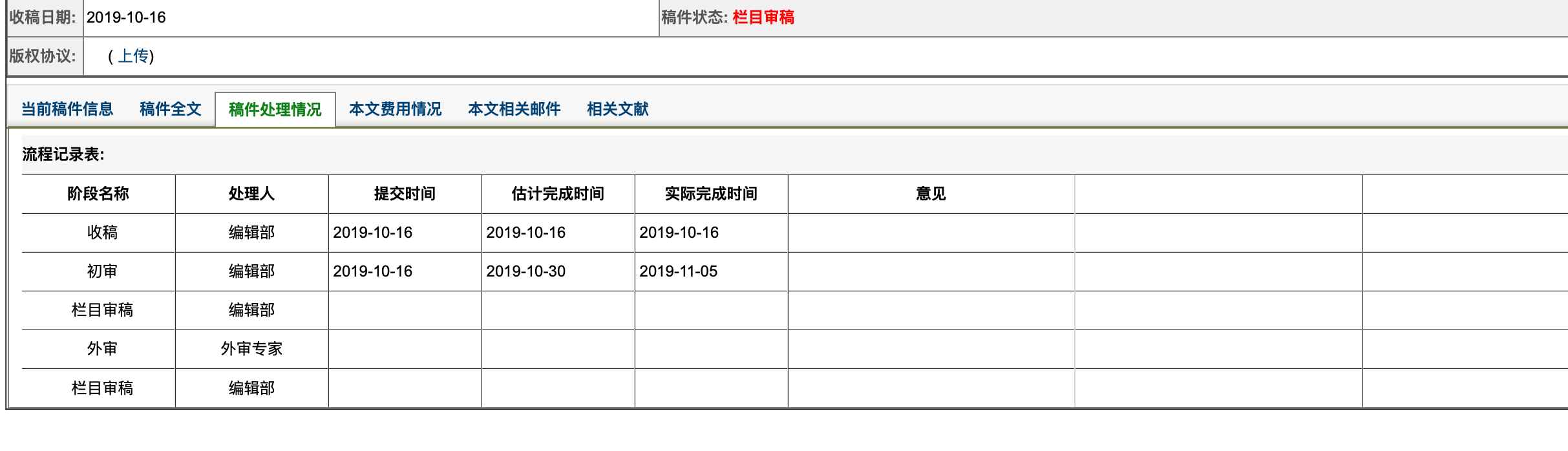 糯米多多 发表于 2020-3-9 16:57 请问楼主第二次栏目审稿用了多久啊?我的稿子刚刚结束了外审,进入栏目审稿了