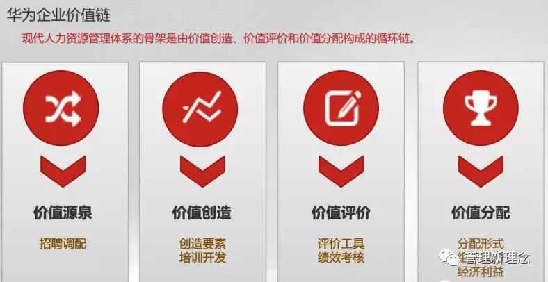 华为绩效管理思想依据的是《基本法》中的企业价值链。华为现代人力资源体系是建立在价值链的基础上的,绩效管理也是建立在价值链之上。