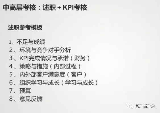 前面提到的中高层考核是述职加KPI,它的述职有一个模板,共有八点要求。