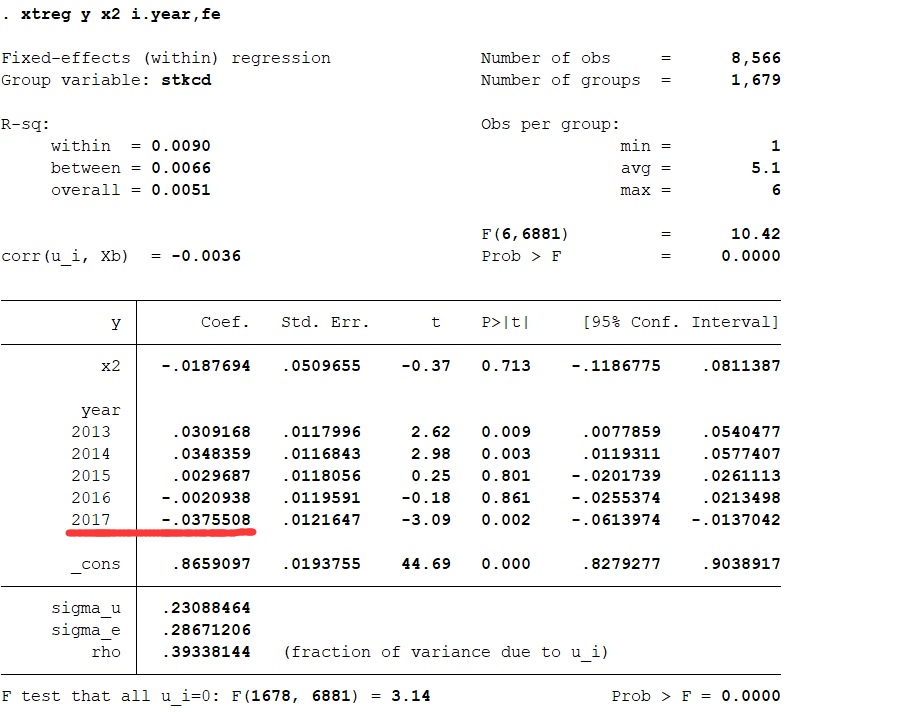 yuanmiaomiao123 发表于 2020-2-25 13:07 这是回归结果,x2变量是监事会人员能力人数/监事会人员总数,y变量是信息披露质量,虚拟变量 x2不应该和y是 ...