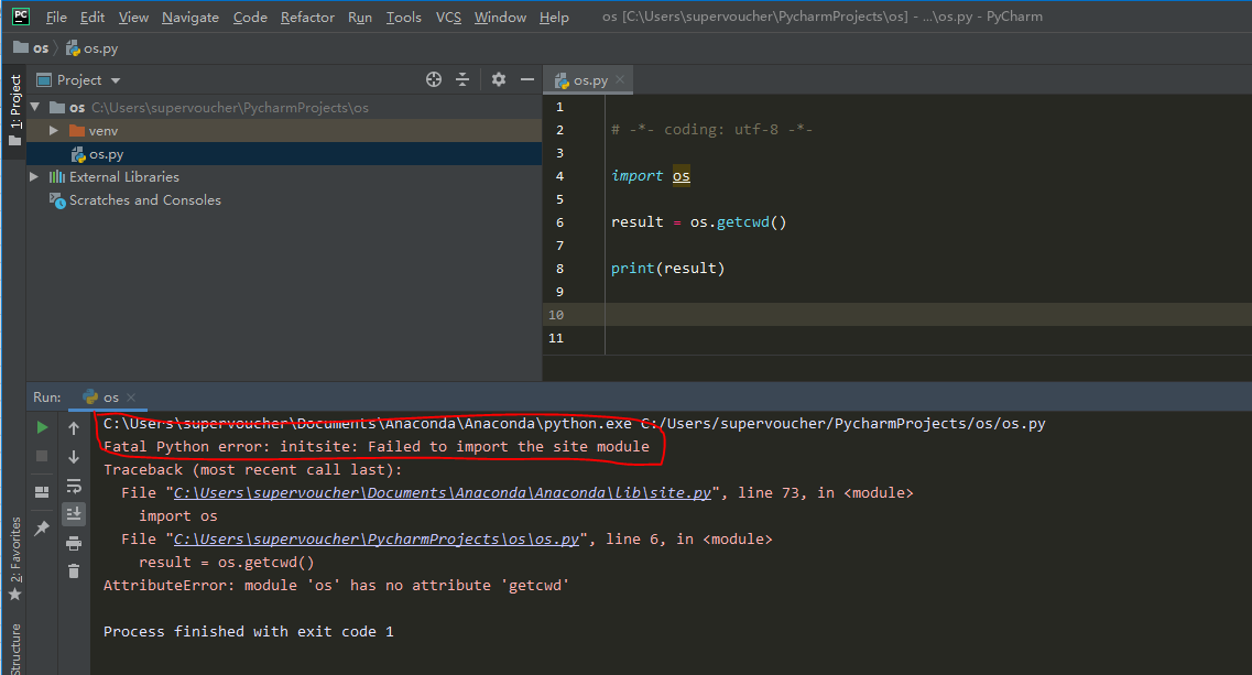 求助,python 在导入os模块的时候,无论如何调用不了,提示的错误代码是: