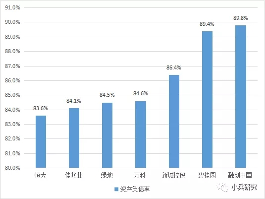 我们看到,近几年恒大的资产负债率一直维持在80%以上,这对于实体企业来说,这样的负债率确实是很高的了,一般来说超过70%的负债率就要引起重视。然而,在房地产行业中,我们对比发现,恒大的资产负债率在房企中并不处于较高的位置。根据各大房企发布的2019年中报披露的数据显示,碧桂园、融创中国、绿地控股、万科、佳兆业等几大龙头房企的资产负债率均高于恒大。