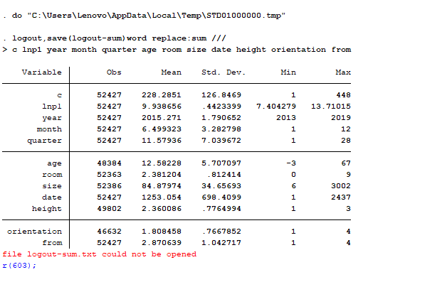 stata 描述性统计结果输出