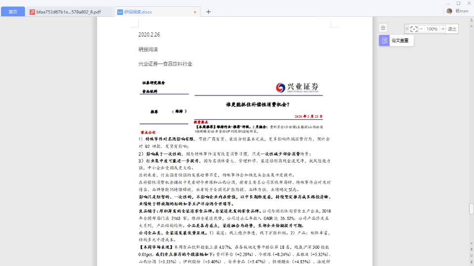 【学习笔记】2020.2.26 研报-食品饮料行业,疫情影响短期显著,中长期向好