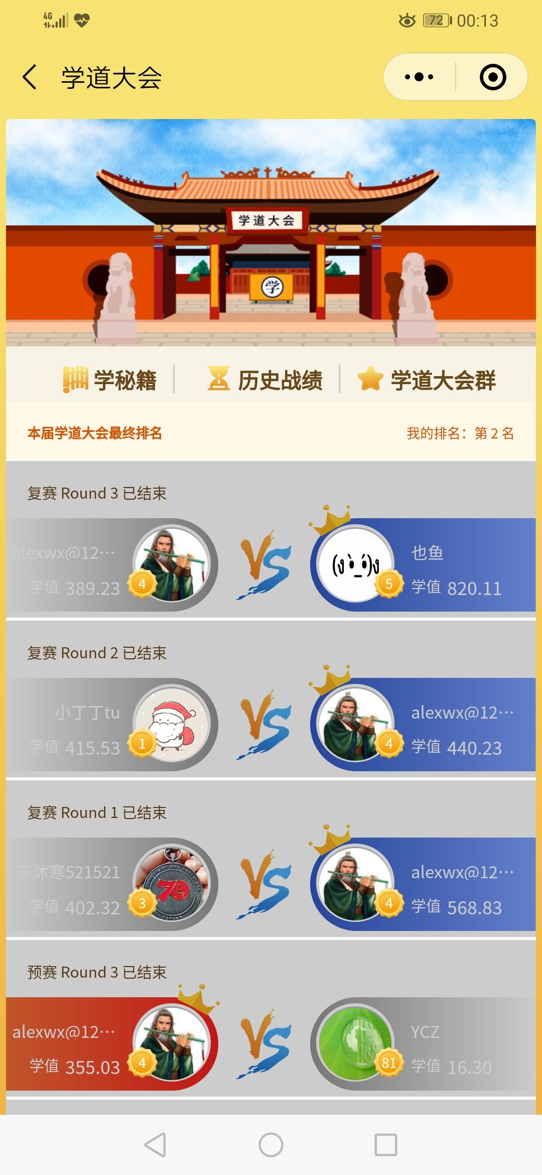 学道大会第二名奖!