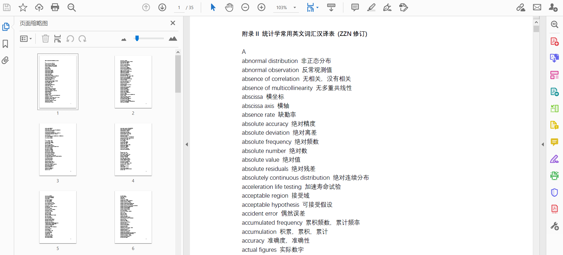 【PDF】《统计学专业英语》附录II 统计学常用英文词汇汉译表