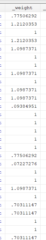 此外,我的weight有很多小于1的非整数值(附图如下),这代表什么?
