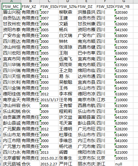FSW_MC名称 FSW_XZ性质 FSW_ESDATE成立时间 FSW_SZNAME所长名字 FSW_DZ地址 FSW_SZDQ所在地区 FSW_YB邮编